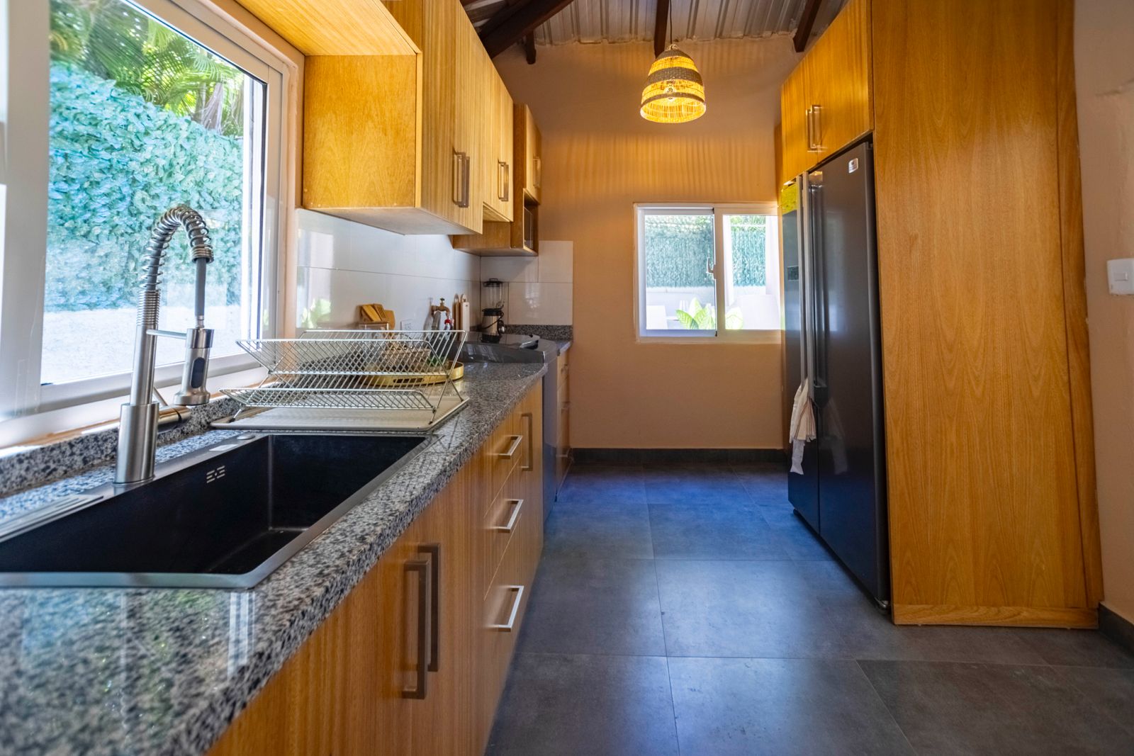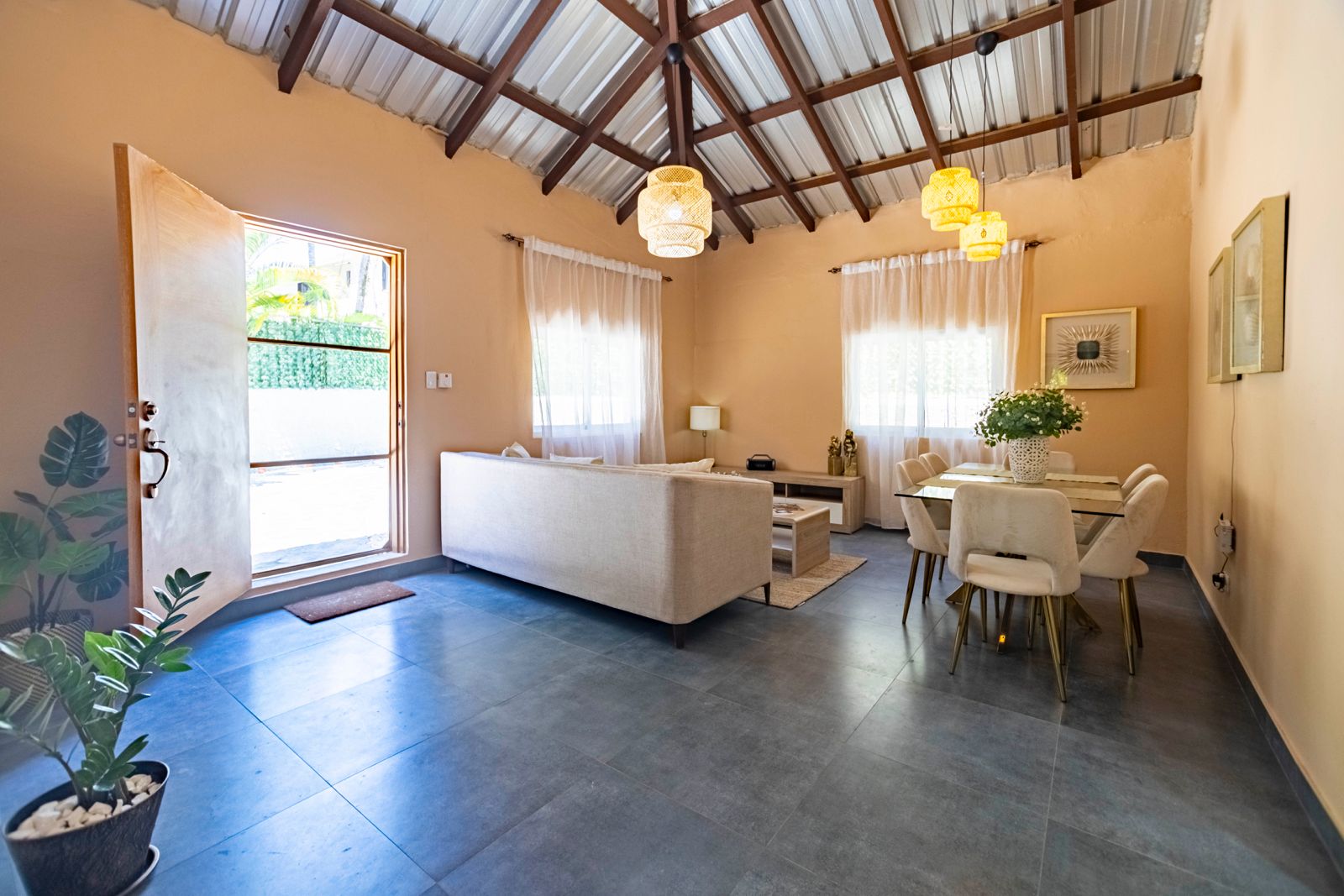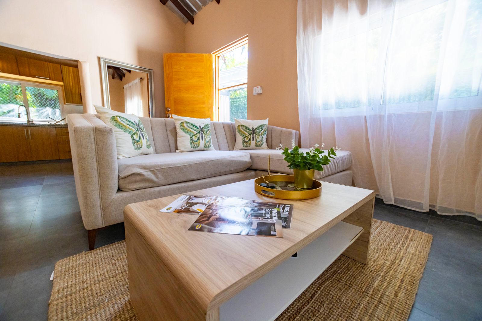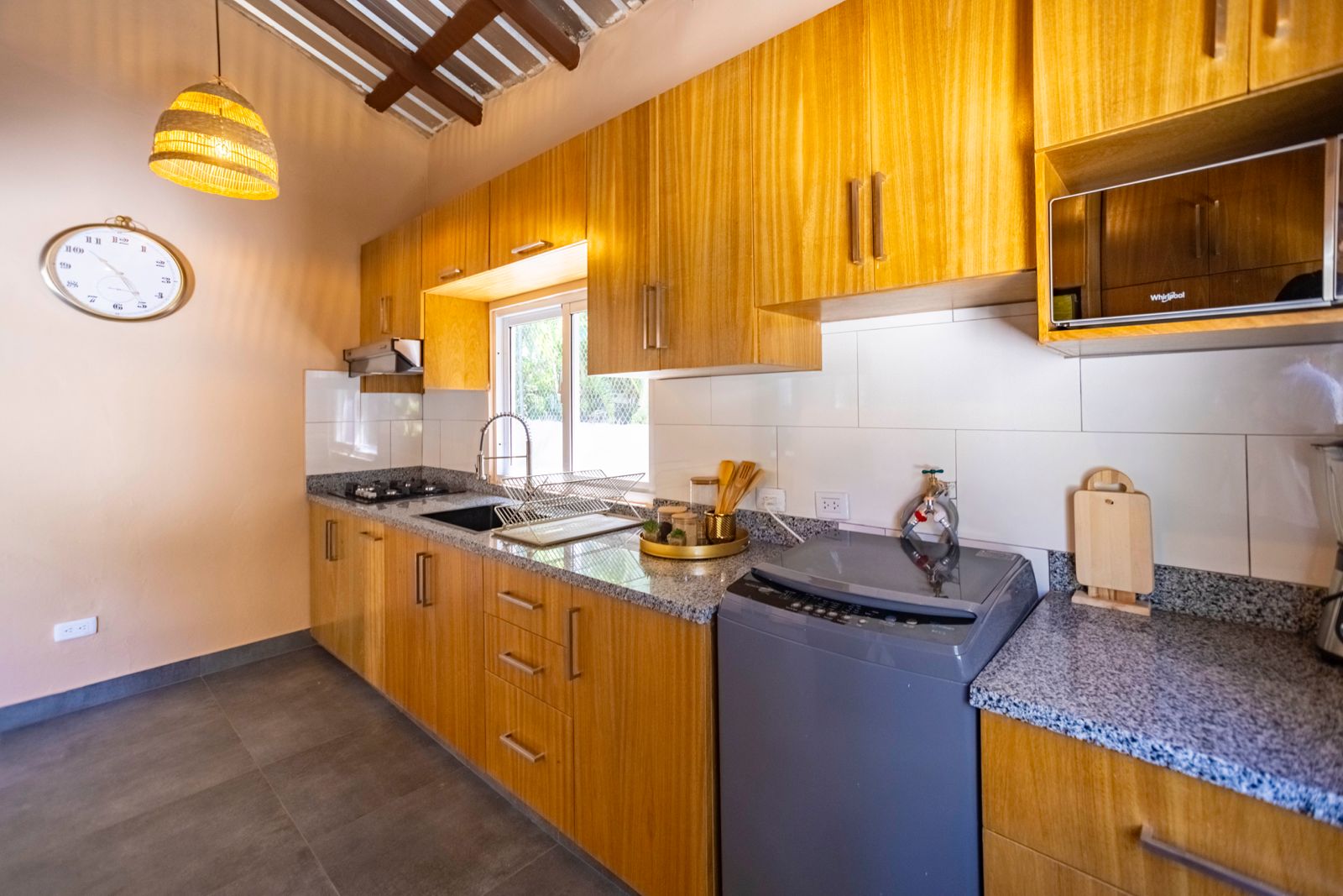 Welcome to our beautiful and renovated home in the heart of Cabarete. This house is equipped with 2 cozy bedrooms, a tastefully decorated bathroom, and a spacious terrace with a jacuzzi perfect for enjoying the tropical breeze. The house is fully equipped with everything you need.Full kitchen, wifi, and TV.